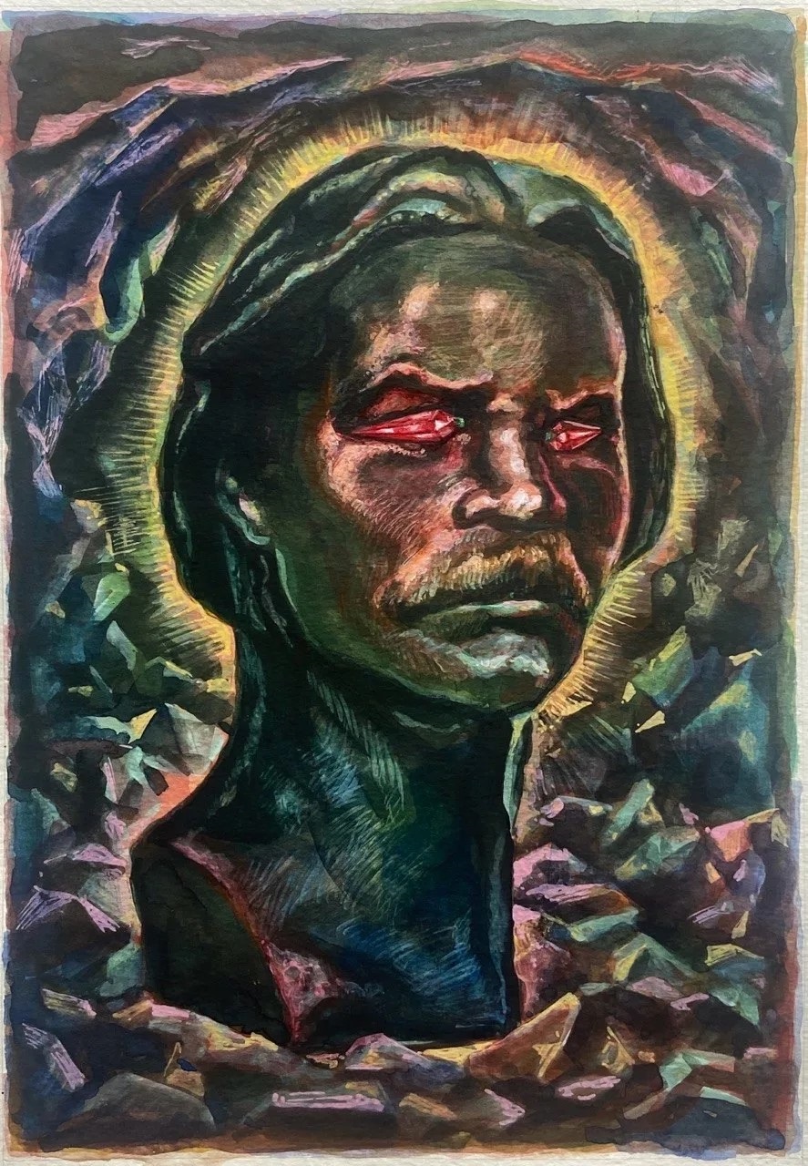 Графический лист "Горький", бумага, акварель, 36х26,5, 2024, в оформлении