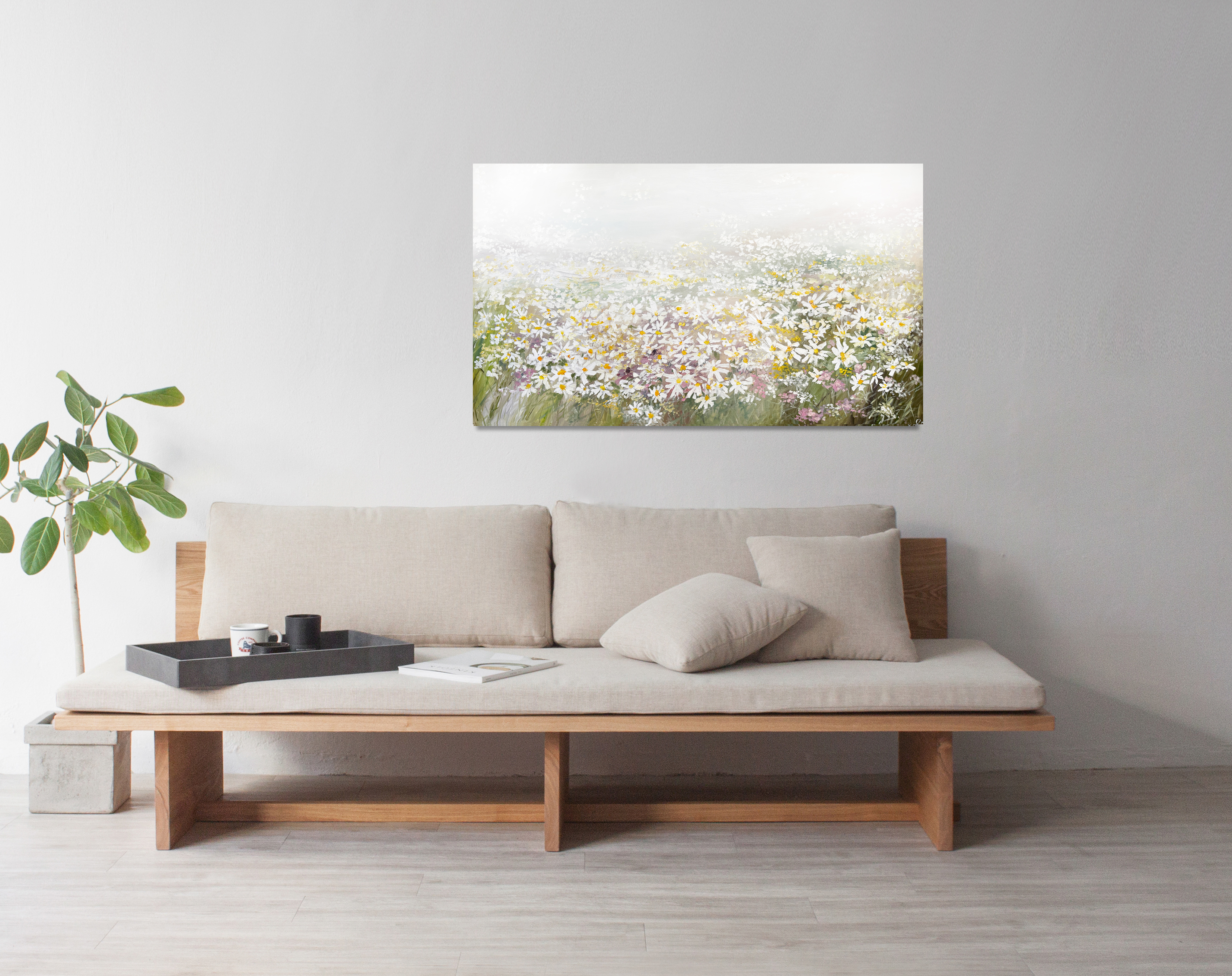 Картина "Раз ромашка, два ромашка, три...", 70х120, холст, масло, 2025