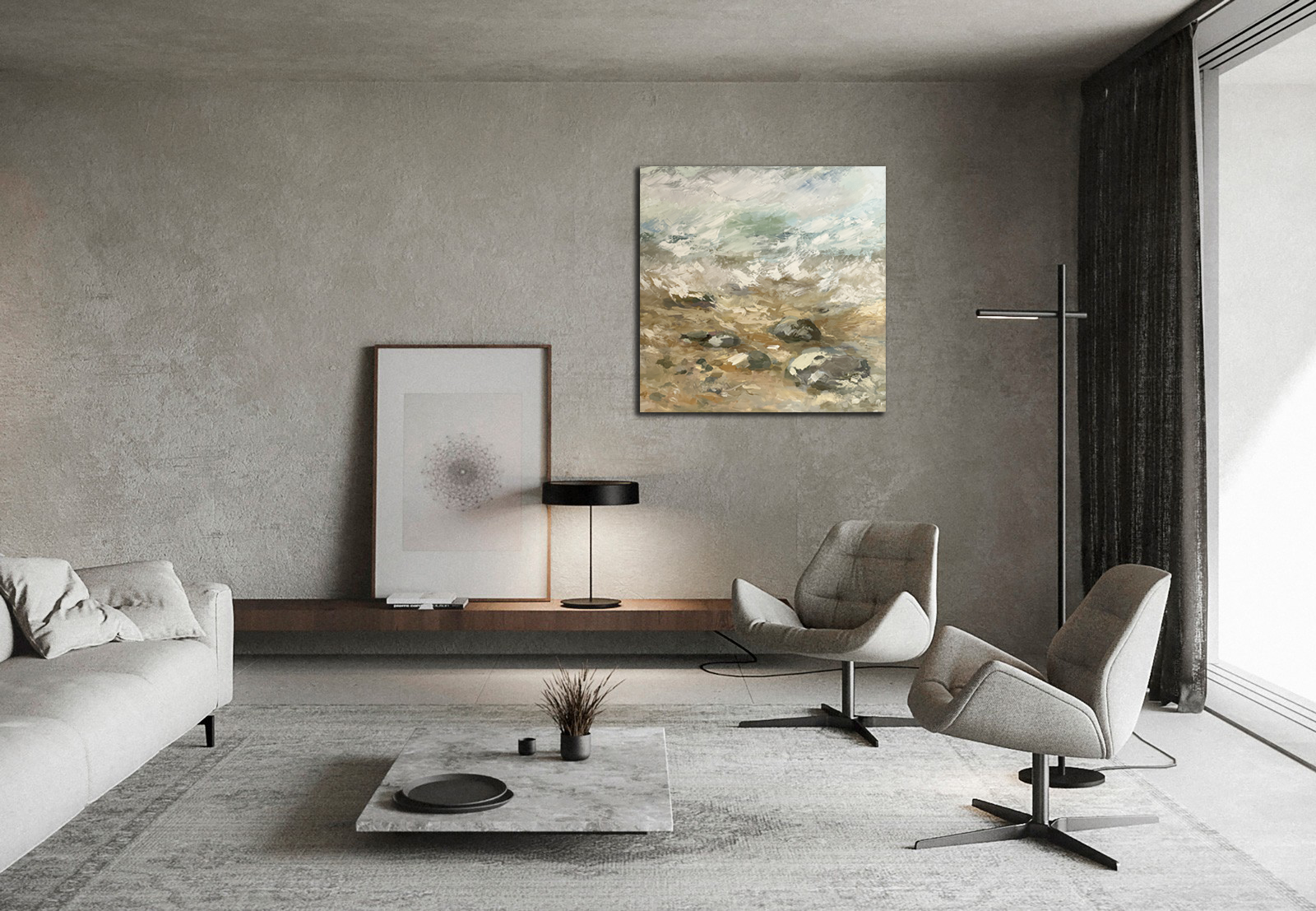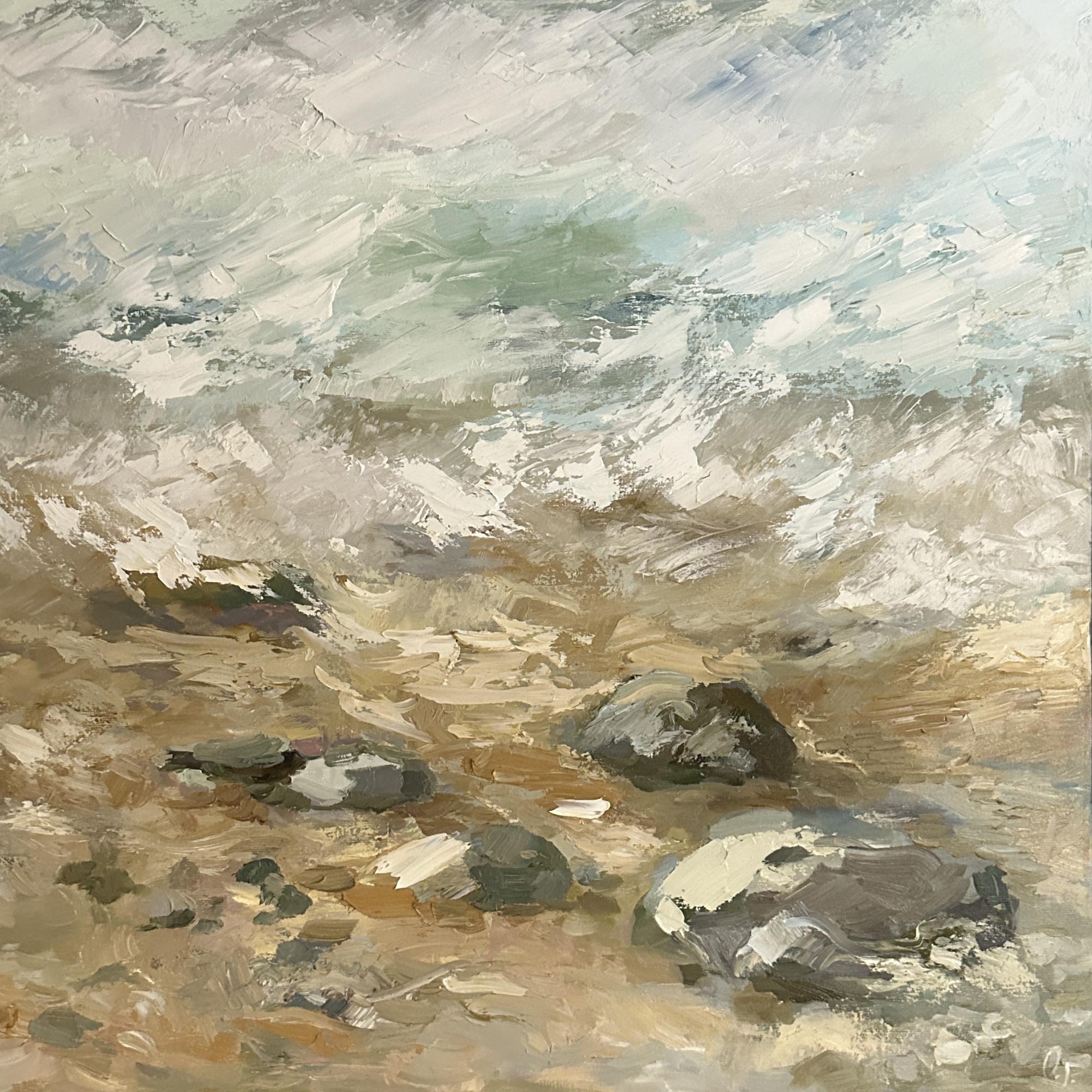 Картина "Волны, камни и песок", 80х80, холст, масло, 2024