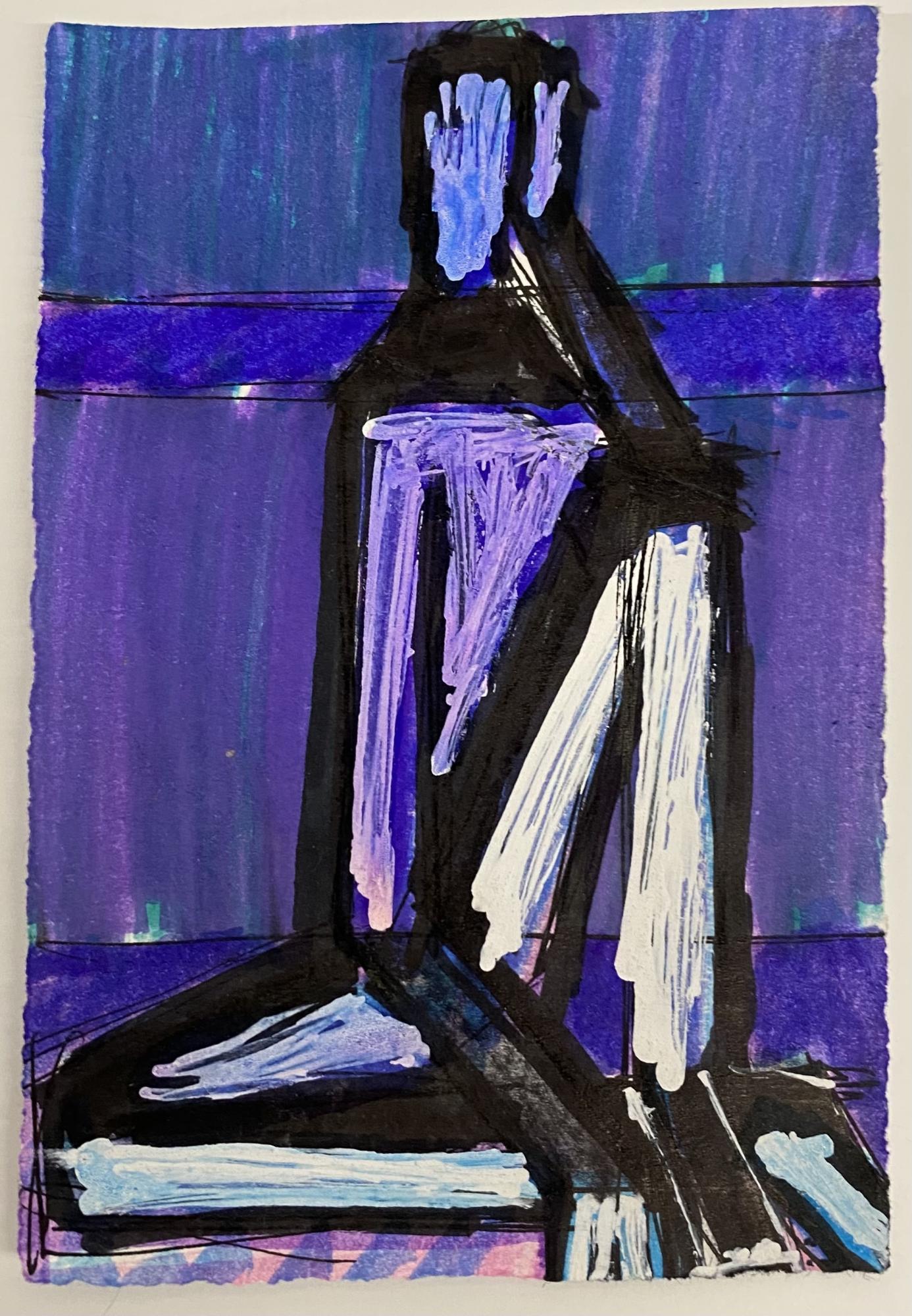 (Сергей Лаушкин, Эскизы к серии "Миф о Zоне ступеней" / 2014-2016гг. Бумага, смешанная техника. Размер 11*8 см) Если понаблюдать за тем, как ходит человек, можно заметить, что он как будто падает вперед, а, чтобы не упасть, выбрасывает вперед ногу. В этот самый момент нога приобретает форму ступени. Если изучать человека дальше, то можно увидеть, что и руки, и даже тело также имеют ступенчатый ритм. И этот ритм присутствует везде. Именно эти наблюдения перенес на бумагу в своих эскизах известный уральский художник Сергей Лаушкин.